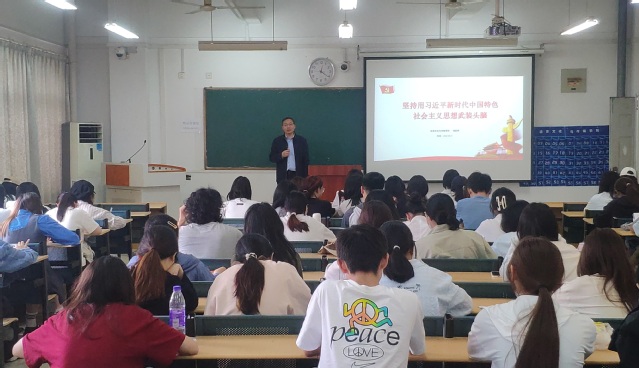 儲昭輝從習近平新時代中國特色社會主義思想的科學體系、主要內容、習近平總書記關于教育、青年工作的重要論述以及學院黨委學習貫徹落實的思路舉措和長效機制四個方面進行講解。他表示,全體學員要堅持用習近平新時代中國特色社會主義思想武裝頭腦,深刻理解把握這一思想的重大意義、科學體系、豐富內涵、精神實質、實踐要求,切實學深悟透,真正做到學思用貫通、知信行統一,筑牢信仰之基,補足精神之鈣,把握思想之舵,自覺將學習成果運用到日常的學習和生活當中,按照一名共產黨員的要求錘煉自己、提高自己,努力發揮先鋒模范作用。