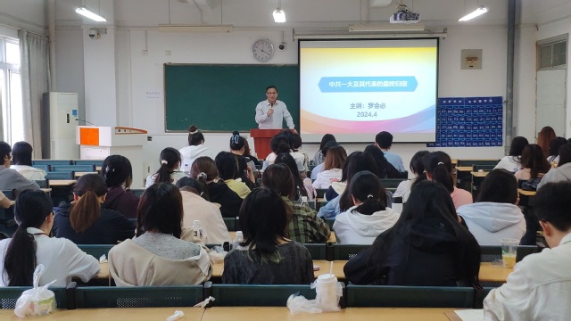 428日中午,語言文化與傳媒學院在5309教室舉行了入黨積極分子培訓班第二次理論授課。此次黨課由合肥大學紀委副書記羅會必主講,主題為中共一大及其代表的最終歸宿,培訓班全體學員參加課程。